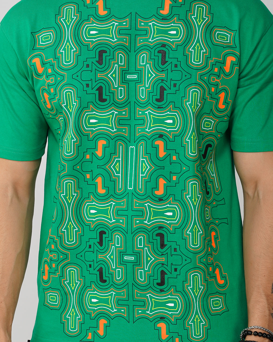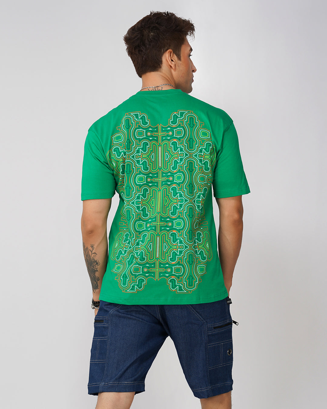 Shipibo Pattern | UV Light Reactive | Oversized Sea Green T-Shirt